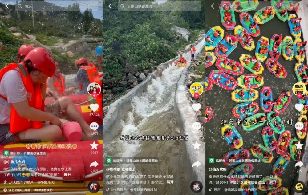 抖音官方引流投放开始,本次沂蒙山峡谷漂流活动抖音投放花费2000元/场,投放总人数8-10万。
